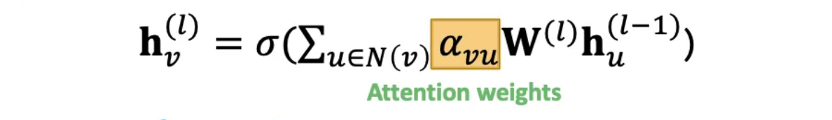 αvu : attention weight → u가 v에게 얼마나 중요한가를 나타내는 값.