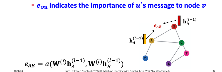 목표 : 그래프의 각 노드마다 이웃 노드에 임의의 중요도를 부여할 수 있도록 하는 것 즉, 단순히 모든 이웃을 동일하게 평균내는 대신, 어떤 이웃은 더 중요하고, 어떤 이웃은 덜 중요하다는 것을 모델이 학습하게 하는 것이 목표임 !