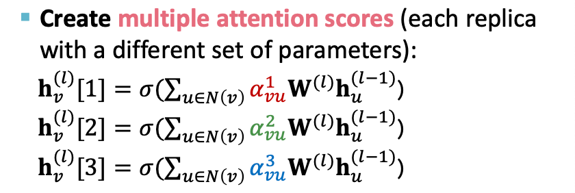 이를 통해 이웃 노드마다 다른 가중치(weight) 를 암묵적으로 부여하게 됨.