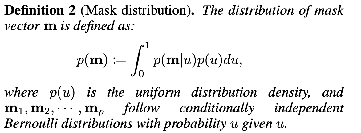 xk : mk= 1 가 의미하는 것은 mk=1 즉, 마스킹되지 않은 열 ( = Xk) 이 주어졌을 때