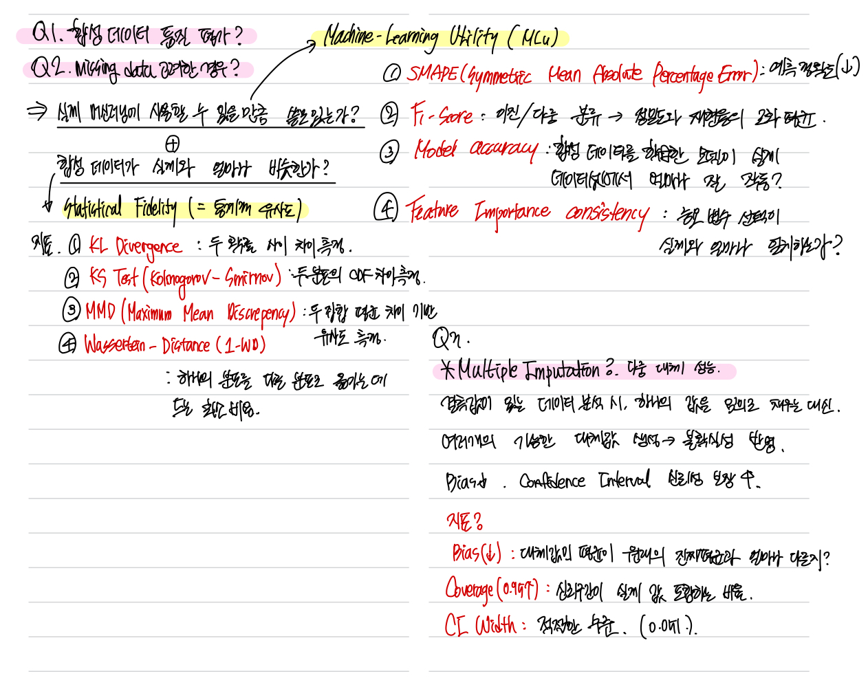 Q2. 결측값 상황에서 고품질 합성 데이터 평가