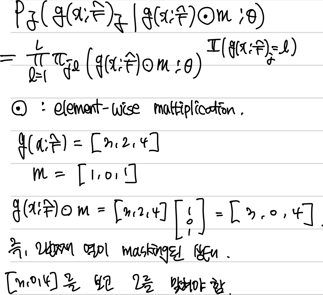 ⊙ 는 원소별 곱 (element-wise multiplication) -> 즉, 마스크된 입력을 의미함.
