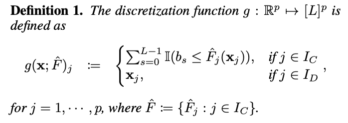 연속형 변수가 유한한 범위를 가질 때 이론적으로 유효하므로, 연속형 열을 CDF를 통해 [0,1]구간으로 정규화해 변환해야함.