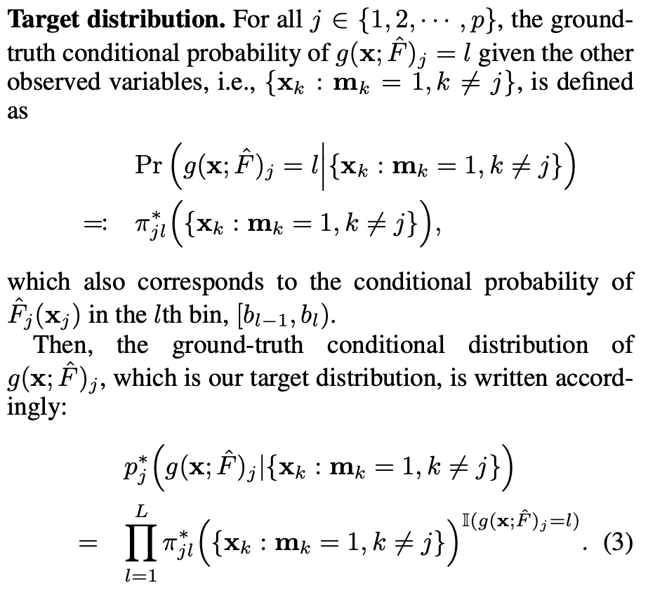 우리의 목적 함수는 각 bin에서 CDF의 조건부 분포를 추정하며, 그 목표 분포는 target distribution으로부터 얻어진 것이다.