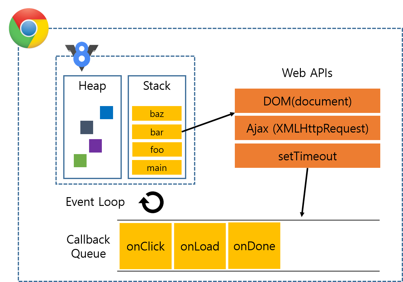 → 크롬의 자바스크립트 런타임 표현한 그림