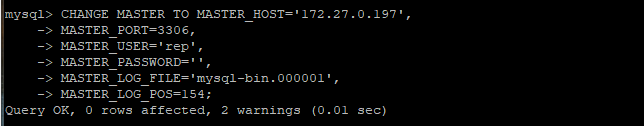 MASTER_LOG_POS='기억해둔 Position'; (입력하여 Master 서버와 연결해줍니다.)