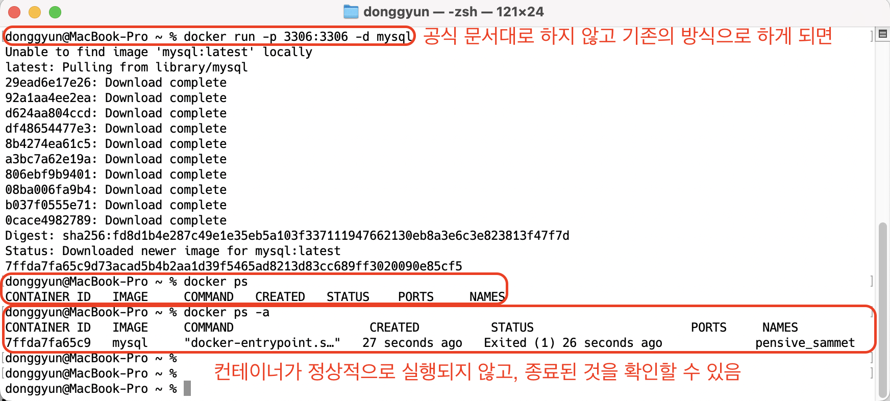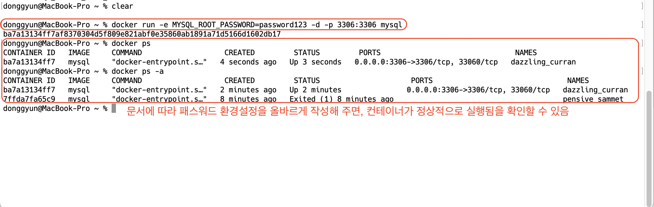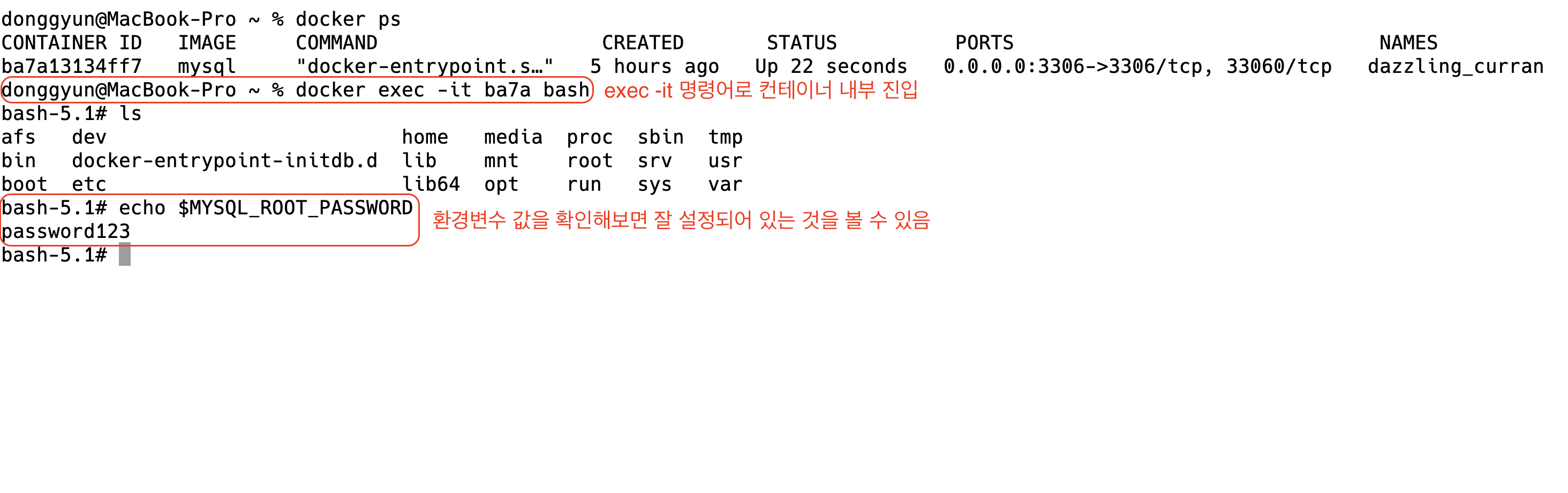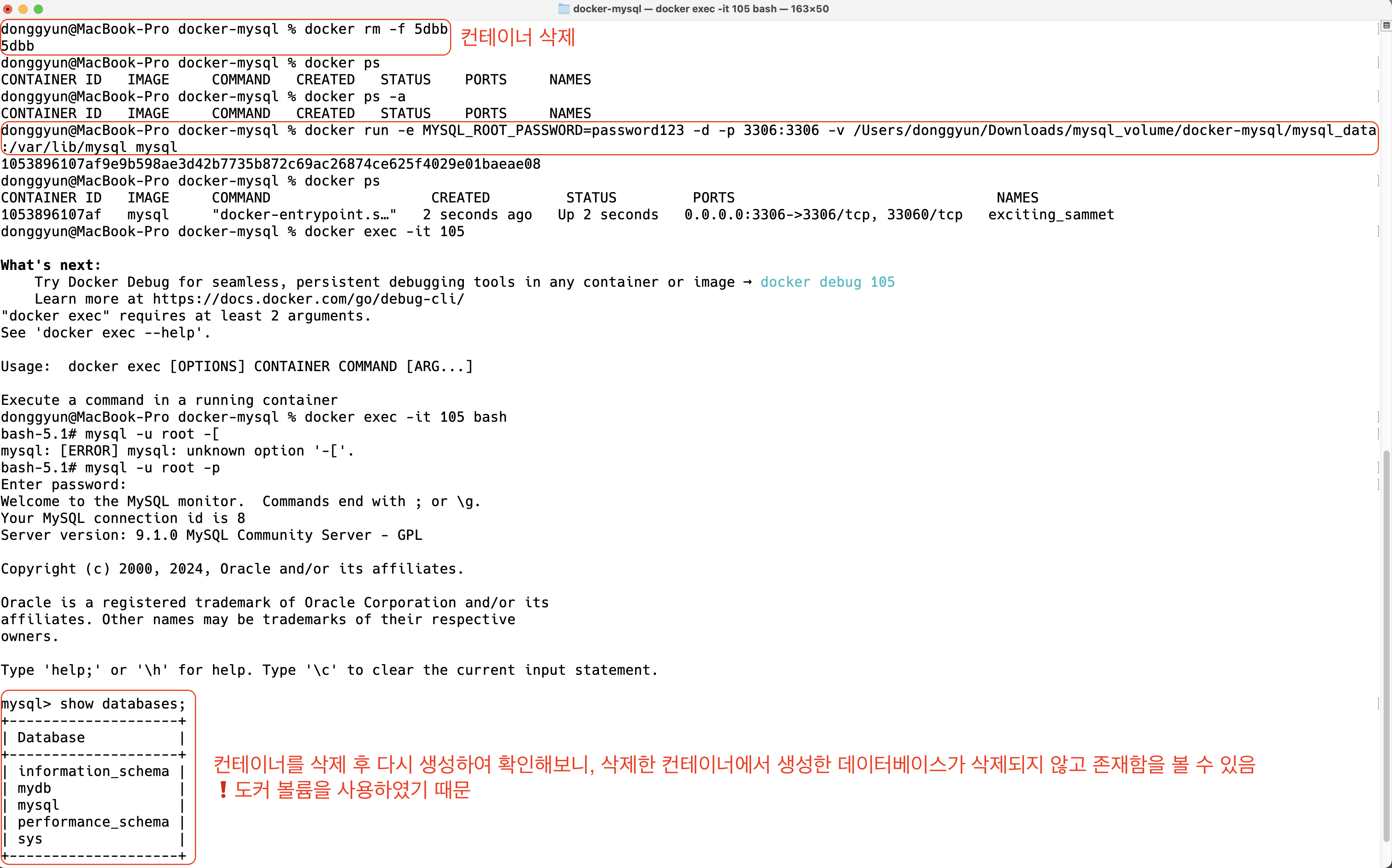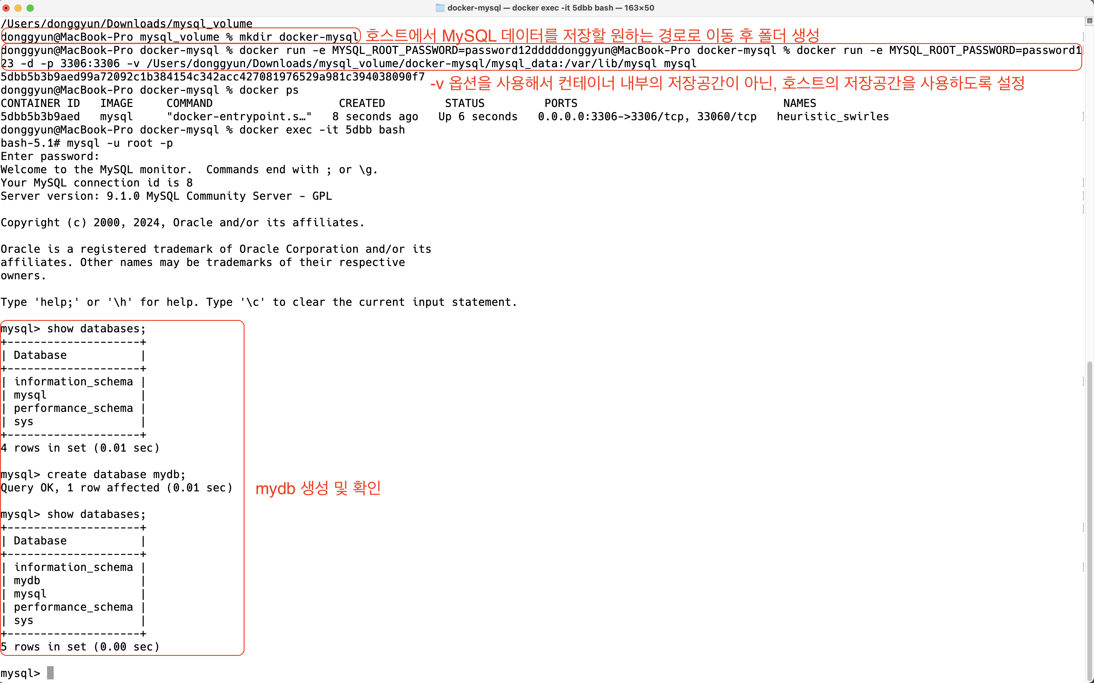 $ docker run -e MYSQL_ROOT_PASSWORD=password123 -p 3306:3306 -v /Users/donggyun/Downloads/mysql_volume/docker-mysql/mysql_data:/var/lib/mysql -d mysql