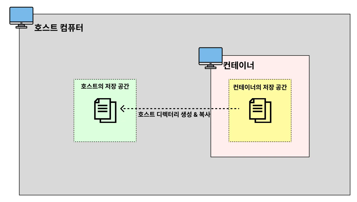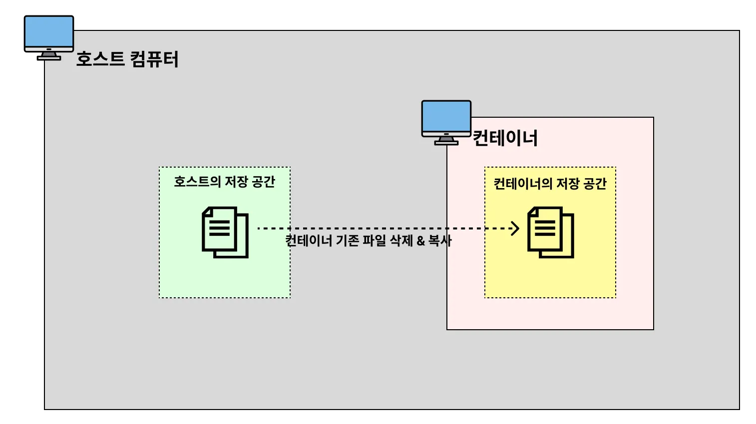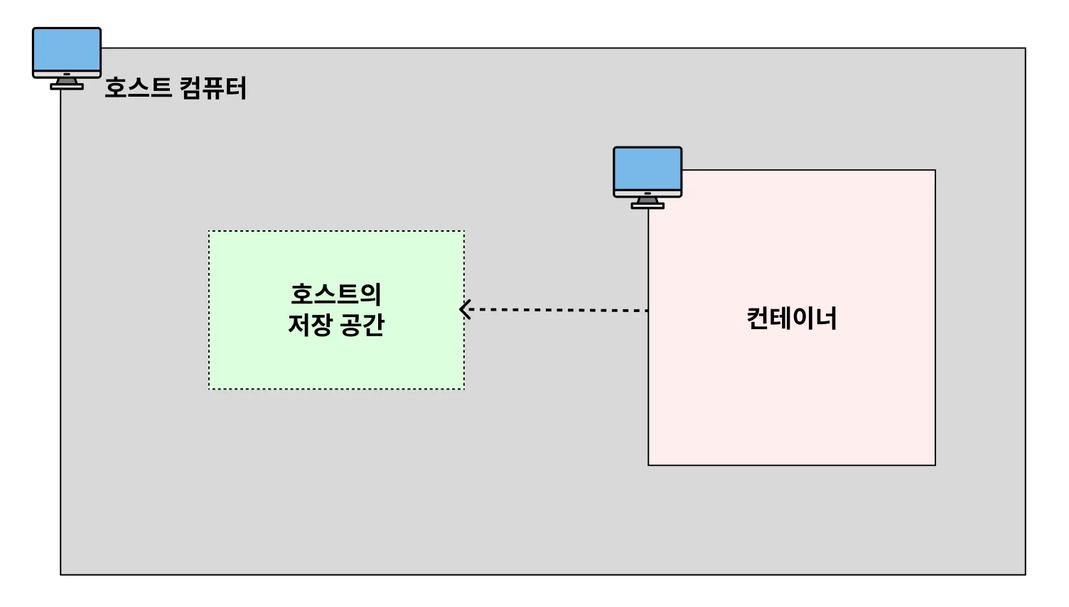 도커 볼륨은 호스트의 저장 공간을 공유하는 방식입니다.