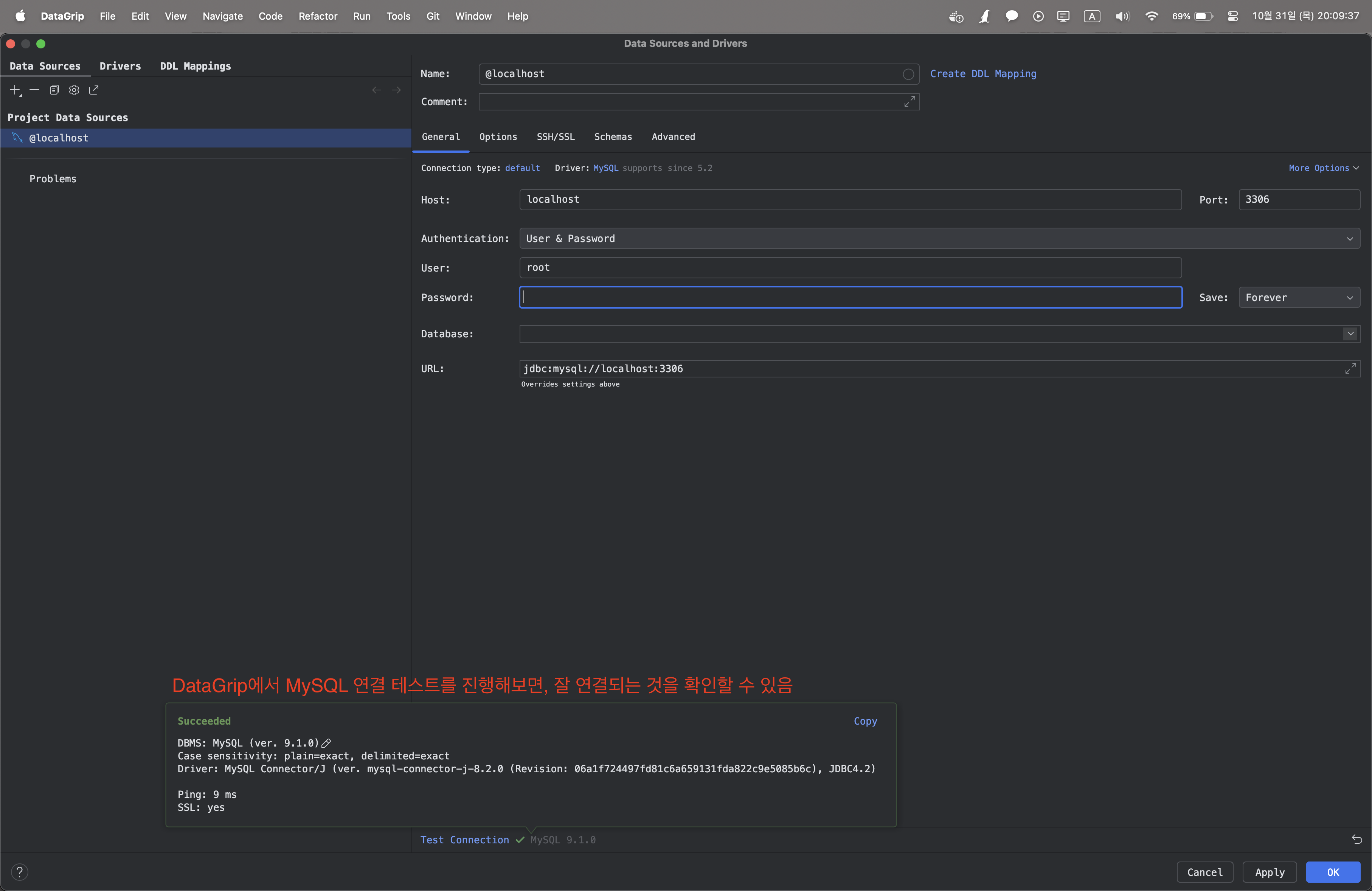 DataGrip으로 확인해보면, 다음과 같이 MySQL이 잘 연결되는 것을 확인할 수 있습니다.