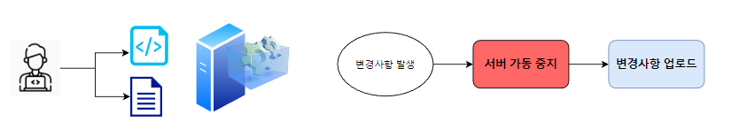 초기 개발 환경에서는 물리적 서버에서 애플리케이션을 실행했습니다. 하지만 이러한 방식은 애플리케이션 변경 사항을 쉽게 적용하기 어렵고, 물리적 서버 유지 관리에 많은 리소스가 소요되었습니다.