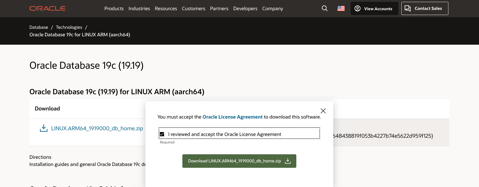 LINUX.ARM64_1919000_db_home.zip 파일은 기본 제공되지 않으며, Oracle 공식 홈페이지에서 별도로 다운로드해야 합니다.
