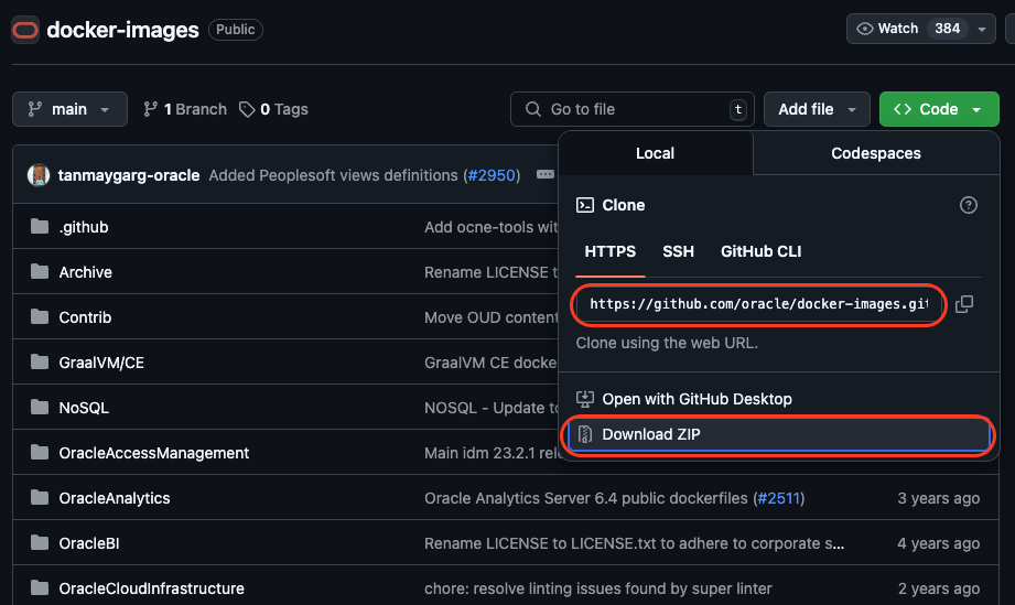 도커 허브에는 오라클사에서 제공하는 공식 이미지가 없습니다. 따라서 오라클 깃허브 페이지에서 직접 이미지를 다운받습니다.