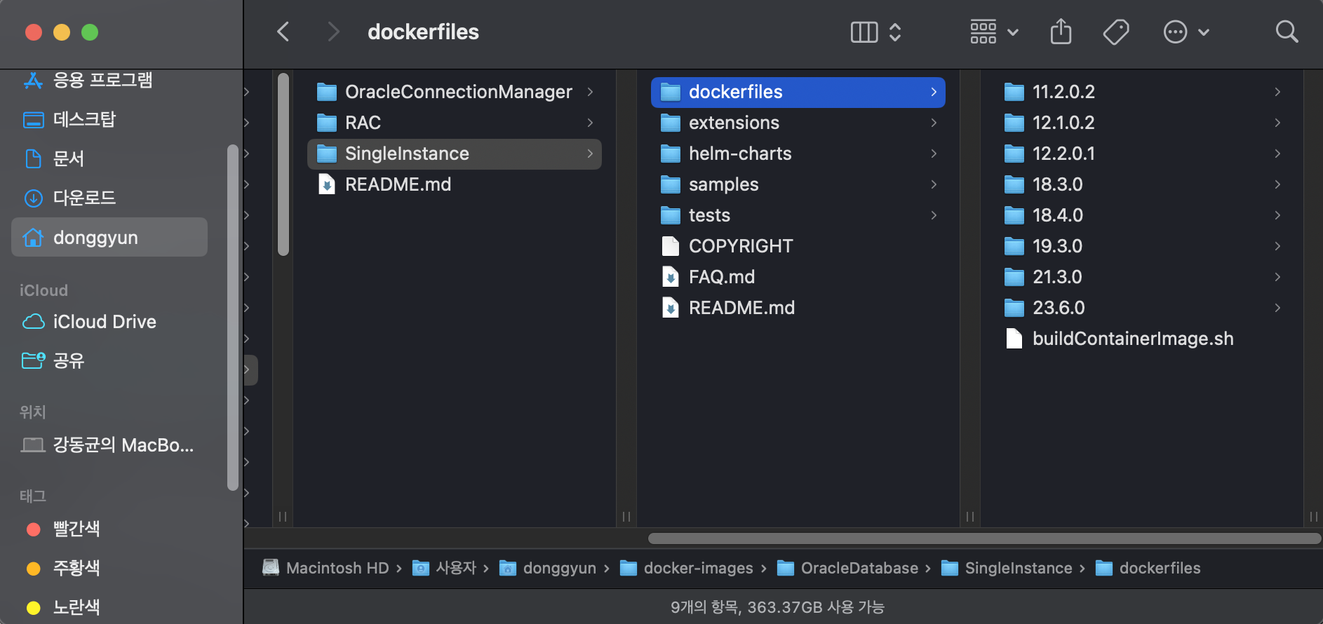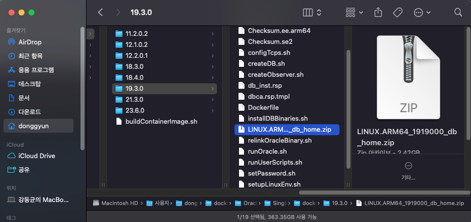~/docker-images/OracleDatabase/SingleInstance/dockerfiles/19.3.0/터미널에서 아래 디렉터리로 이동합니다.