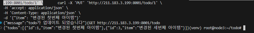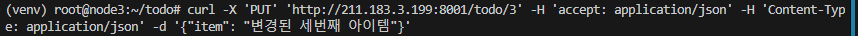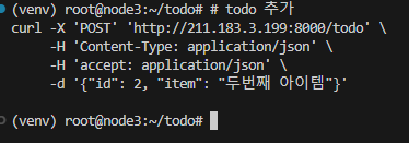 root@node3:~/todo# source venv/bin/activate # 가상환경 활성화 , 비활성화 -->deactivate