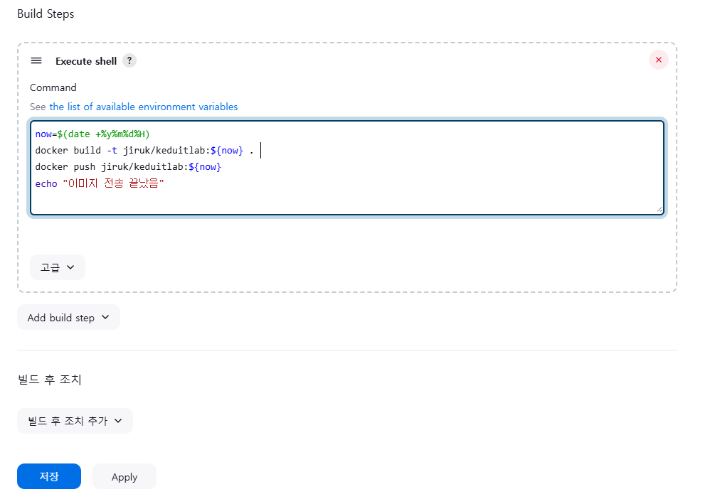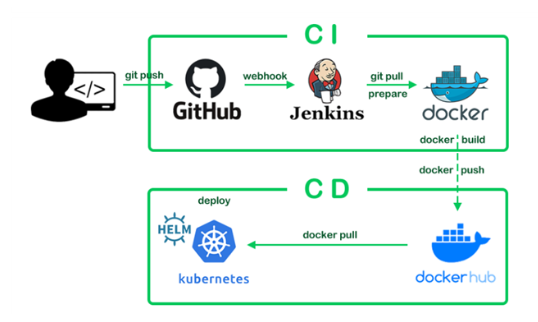코드를 pull 한 뒤 이미지 생성-> 허브로 push-> 노드에 pull ->애플리케이션 배포가 될 수 있도록한다