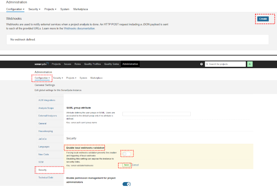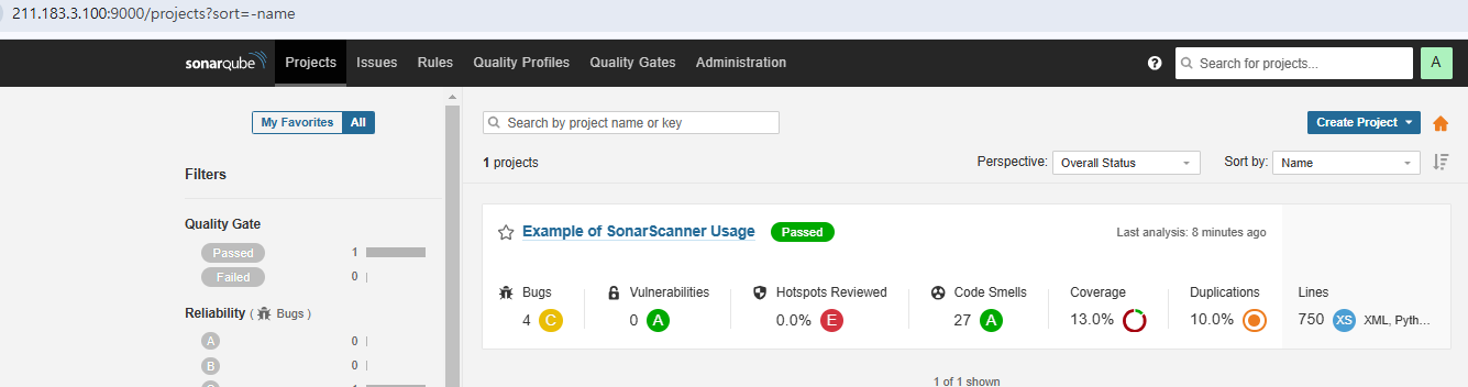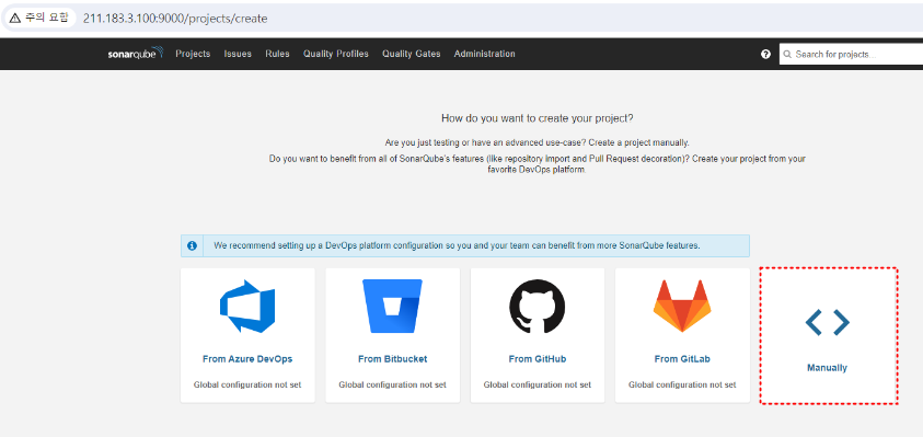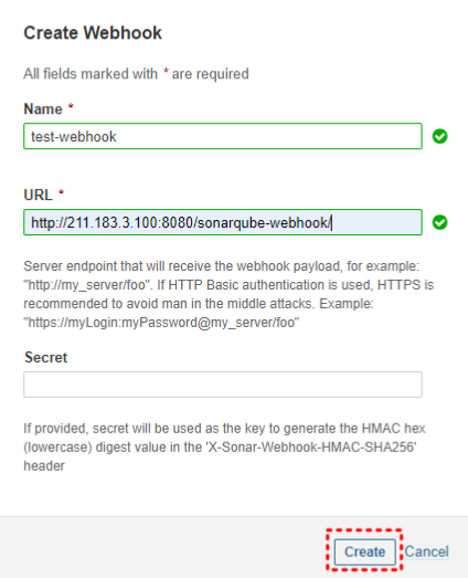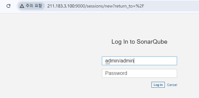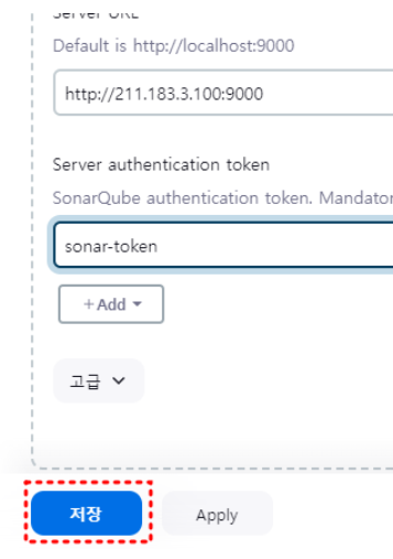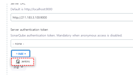 Name: sonarQube-Server, Server URL : http://211.183.3.100:9000