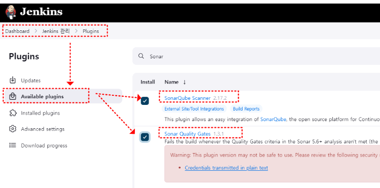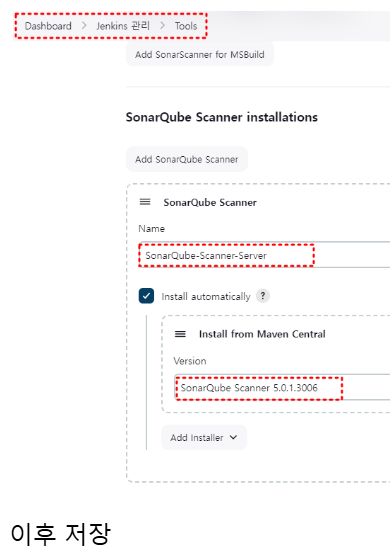 Global Tools Configuration (scanner 등록하기 - 스캐너 버전을 선택하여 어떤 스캐너를 동작시킬 것인지 선택할 수 있다.)