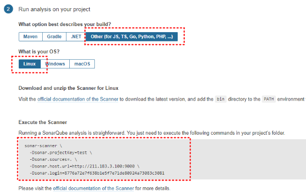 script: 'sonar-scanner -Dsonar.projectKey=test -Dsonar.sources=. -Dsonar.host.url=http://211.183.3.100:9000 -Dsonar.login=36388a365ca95c39a205a2f6d0fa9fb92d510e36',