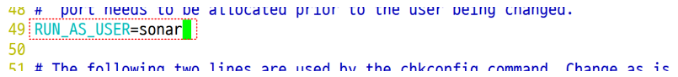 스크립트를 수정하여 sonarqube 를 실행하는 사용자를 sonar 로 변경한다.