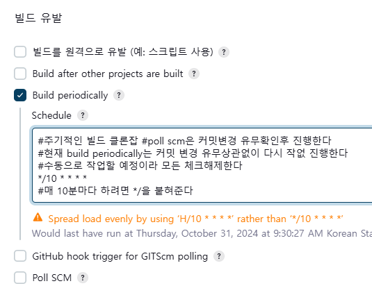 예를 들어 팀원들에게 오후5시까지 모든 코드를 push하도록 하고 끝나면 이를 6시까지 팀장이 이를 확인한다. 6시가 되면 자동으로 파이프라인이 동작하여 repo에 있는 (팀장이 검증을마친)
