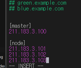 [user1@localhost ~]$ sudo vi /etc/ansible/hosts