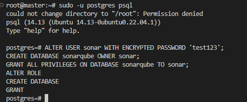 GRANT ALL PRIVILEGES ON DATABASE sonarqube to sonar;