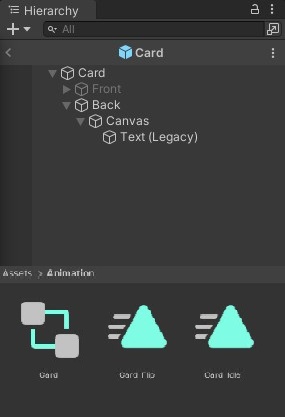 OpenCard()에서 "isOpen"값을 true로 바꾸면 Card_Flip Animation이 실행되고, animation이 동작하는 시간만큼 Card의 Front를 켜주고 Back을 끄는 것을 늦춘다.