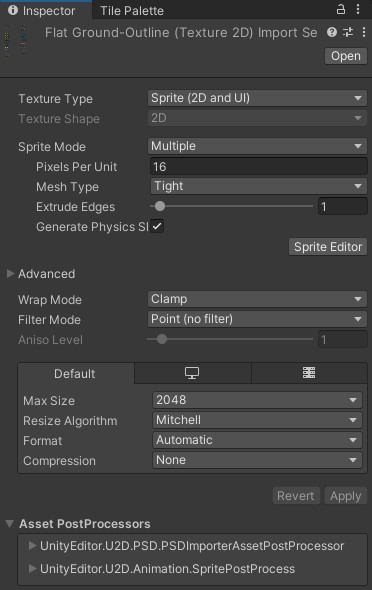 Sprite Mode가 Multiple인 것을 확인. 그 아래 Sprite Editor를 클릭한다.
