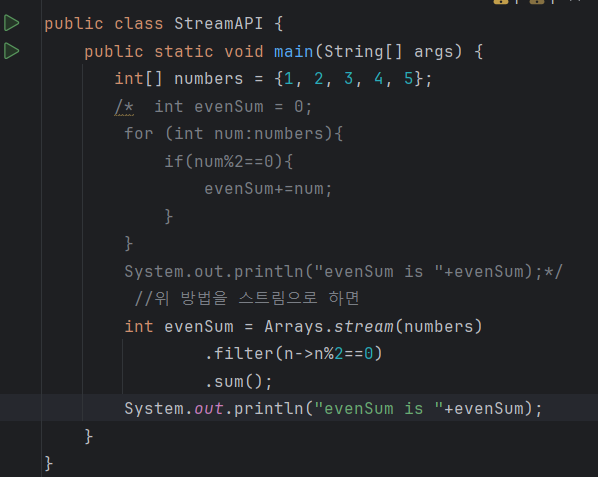 배열을 스트림으로 변환한다: 배열의 원소들을 스트림 형태로 변환하여 처리할 수 있게 하는 것.