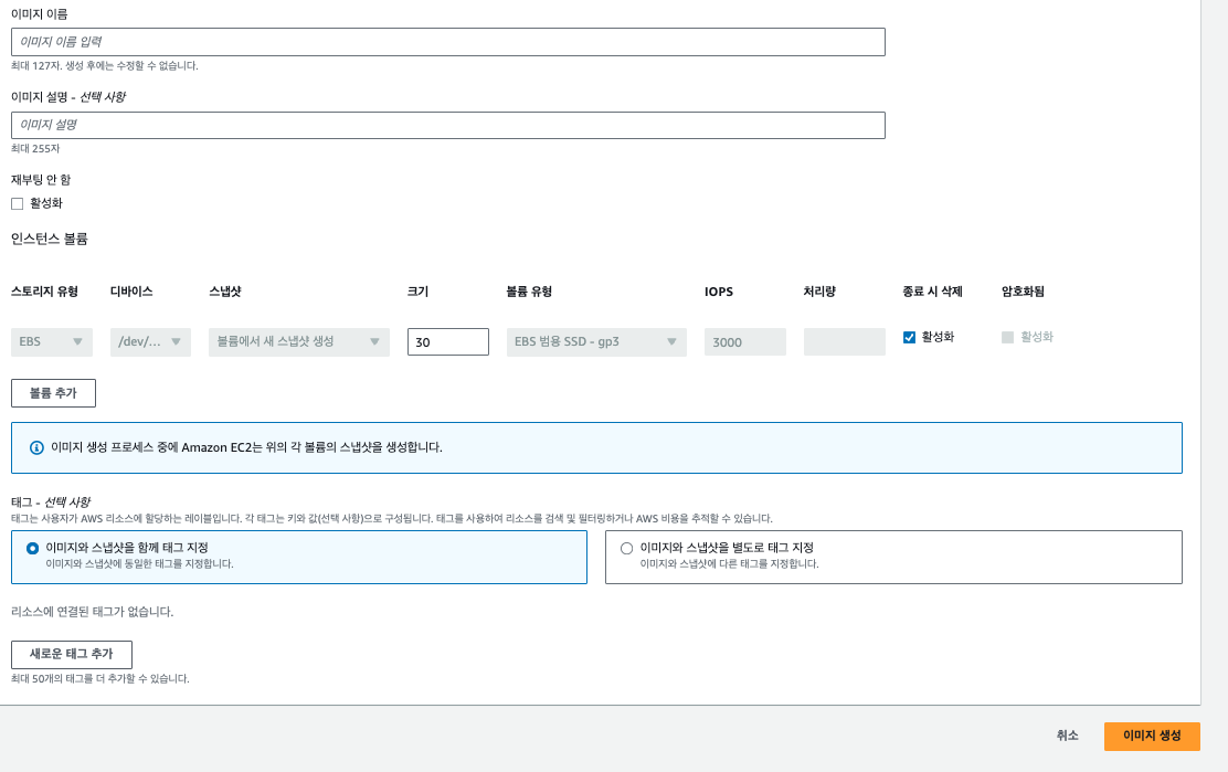 이제 기존에 만들어서 ec2 에 띄운 인스턴스의 이미지를 복사해서 똑같이 새로하나 만들어준다.
