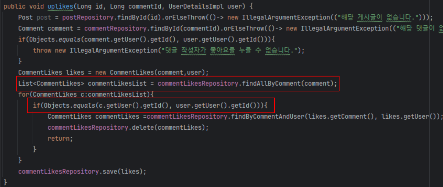 그래서 좋아요엔티티를 분리하는 방법을 생각해보았다.