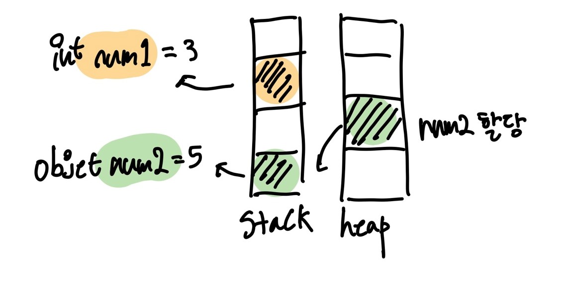 object num2 = 5 // 힙에 할당