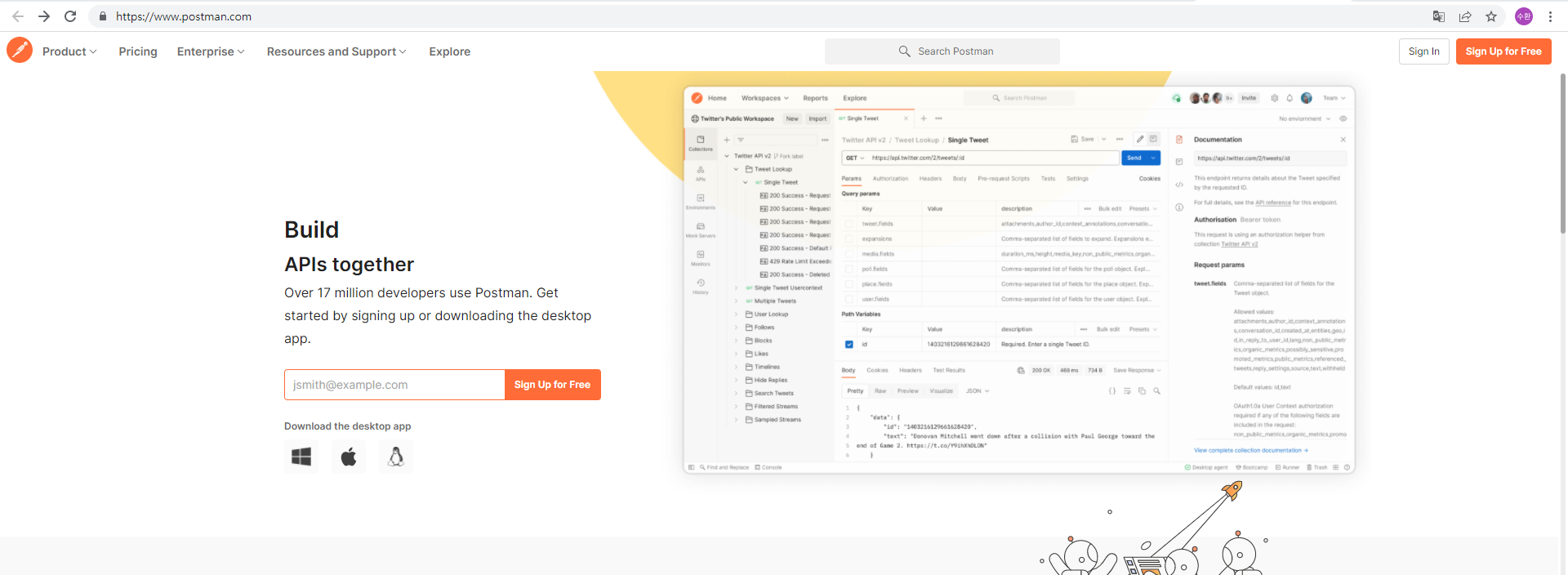 Postman은 개발한 API를 테스트하고, 테스트 결과를 공유하여 API 개발의 생산성을 높여주는 플랫폼입니다.