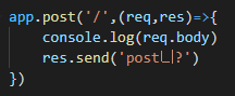 get요청과 다르게 console.log(req.body) 를 사용하여 입력한 값들을 객체형태로 받을 수 있다.
