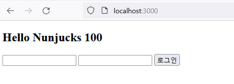 위에서는 html 파일에 {{num}} 부분이 100으로 이미 할당되있기 때문에 숫자 100이 같이 적혀있다.