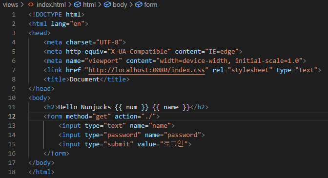 Nunjucks는 템플릿 엔진중 하나로 자바스크립트를 사용해서 HTML를 렌더링할 수 있게 해줍니다.