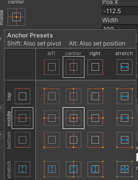 UI 요소가 Canvas의 어디에 붙어 있을지를 결정하는 기준점(상대 좌표)입니다.