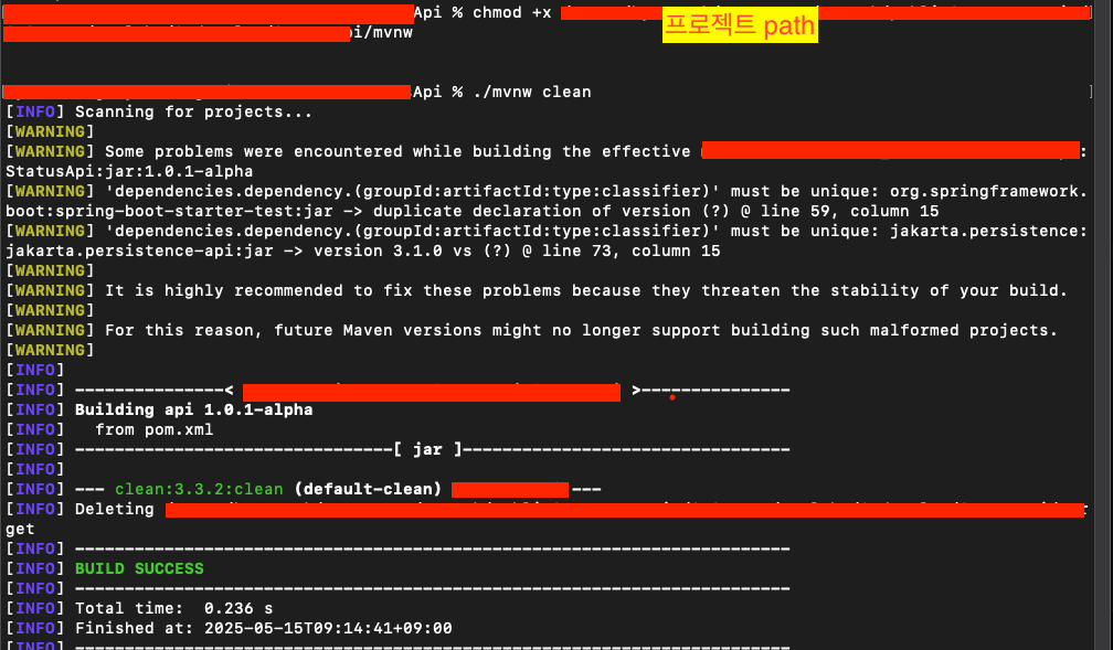 mvnw clean maven 패키지들을 초기화할 때 사용.