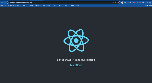 로컬 8080 포트로 접속하면 Nginx에서 리액트 앱이 서비스되는 걸 볼 수 있다.
