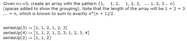 seriesUp(3) → 1, 1, 2, 1, 2, 3