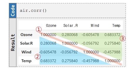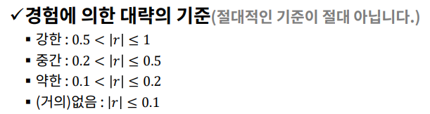 - p-value < 0.05 : 두 변수 간에 관계가 있다. (상관관계가 있다고 판단)