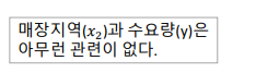 귀무가설 : 매장지역(𝑥2)에 따라 수요량(𝑦)에 차이가 없다.