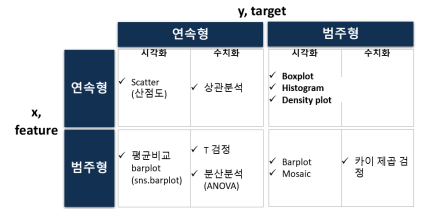 - p-value >= 0.05 : 두 변수 간에 관계가 없다.