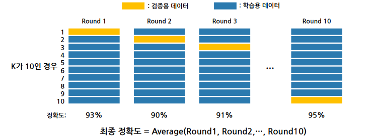• 그러므로 수업에서의 K-분할은 x_train, y_train 데이터만을 대상으로 함