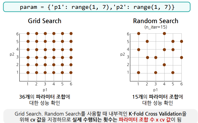 딕셔너리 형태로 파라미터 두 개의 범위를 지정한 경우
