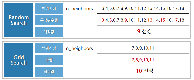 ① 1~n 구간의 정수 중 무작위로 m개 골라 n_neighbors 값으로 해서 모델 성능 수집