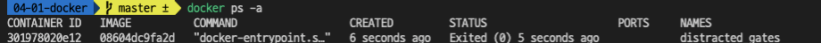 docker ps -adocker 내의 종료된 컨테이너를 포함한 모든 컨테이너 목록을 보여주는 명령어이다.
