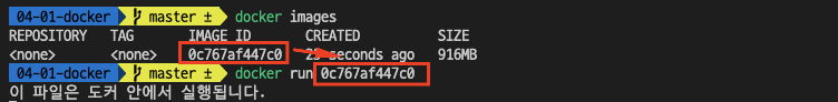 3. docker run IMAGE IDdocker images 로 알 수 있던 도커의 IMAGE ID 를 통해서 docker run IMAGE ID 명령어를 입력한다.
