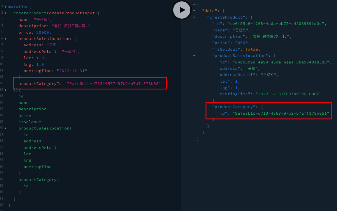 yarn start:dev를 통해 로컬에 서버 띄운 후, 플레이그라운드에서 카테고리를 먼저 만들어보자