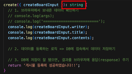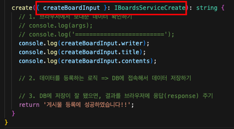 - resolver 파일에서 보내준 createBoardInput 은 dto 폴더에 존재하는 CreateBoardInput 이다.